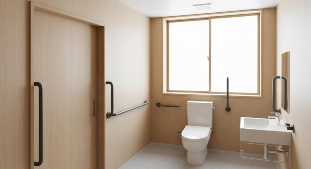 障がい者トイレの役割は、決して「特別な設備」を入れることではなく、その人の身体や感覚、その日の体調に合わせて、排泄という基本的な行為を安全に行える環境を整えることです。