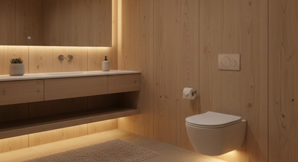 そのため、擬音装置や換気扇のオン・オフを選べる設計にする、音の反響を抑える素材を使う、まぶしさを抑えた間接照明にするなど、刺激を減らす工夫を取り入れることが、安心して使えるトイレづくりにつながります。
