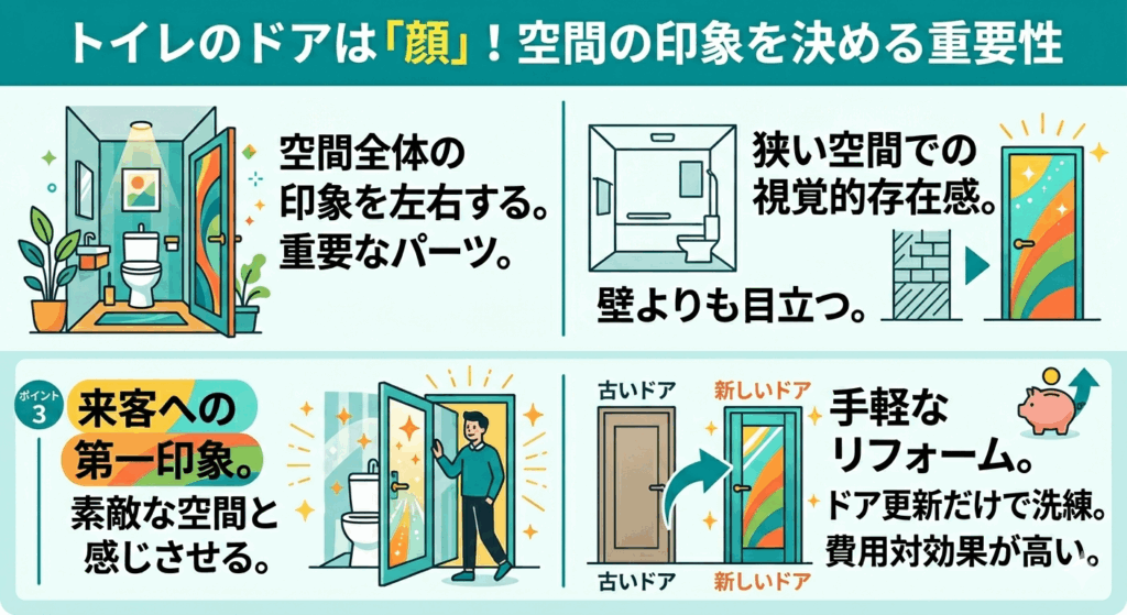 トイレのドアは、単なる出入り口ではありません。空間全体の印象を左右する、いわばトイレの「顔」ともいえる重要なパーツです。