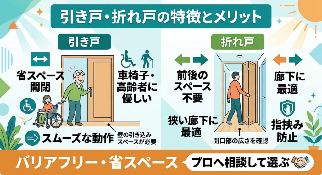 将来を見据えたリフォームで人気を集めているのが「引き戸」や「折れ戸」です。