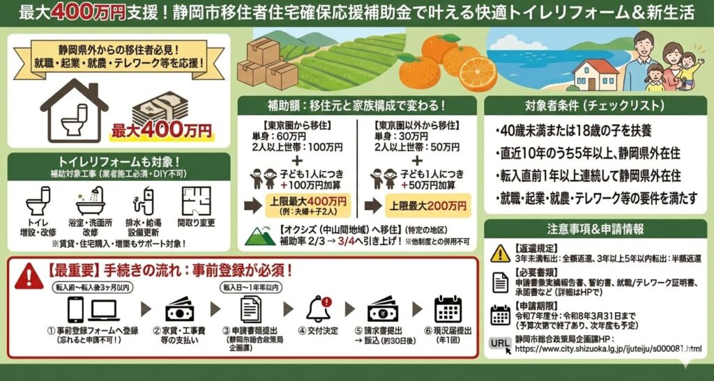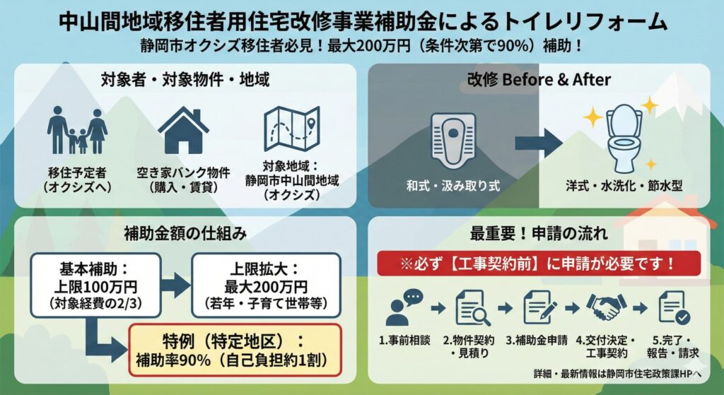 静岡市でトイレリフォームを検討している方にとって、ぜひ押さえておきたい補助金のひとつです。