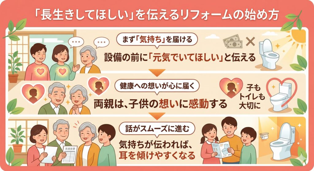 「長生きしてほしい」という一番シンプルな願いをまっすぐ伝えることが、実は一番よいリフォームの始め方です。