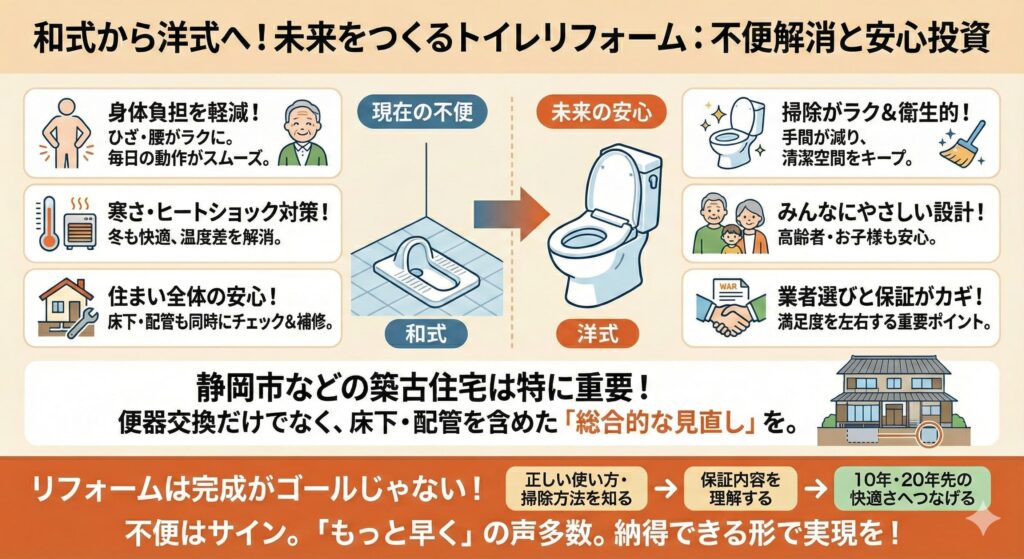 和式から洋式の一歩が、これからの10年・20年の快適さを大きく変えていきます。