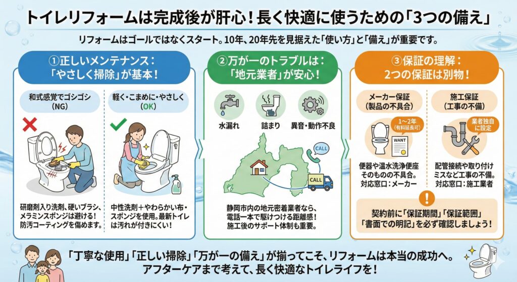 トイレリフォームは「完成したら終わり」ではありません。