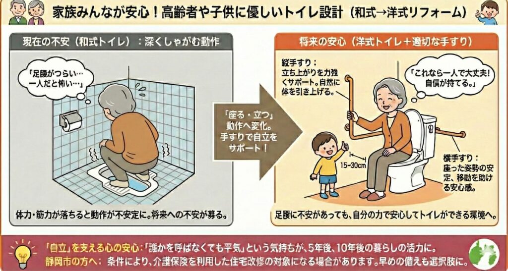 和式トイレから洋式トイレへのリフォームは、「いまの不便」を解消するだけのものではありません。